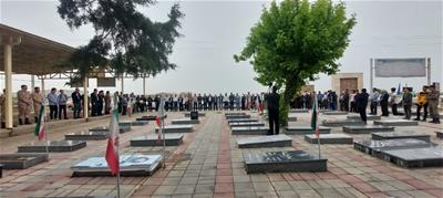 بارروبی و عطرافشانی گلزار شهدای باروق بمناسبت سوم خرداد سالروز حماسه فتح خرمشهر با حضور حسینی فرماندار، مسئولان شهرستان، جمعی از خانواده های معظم شهداء و مردم شهید پرور باروق
