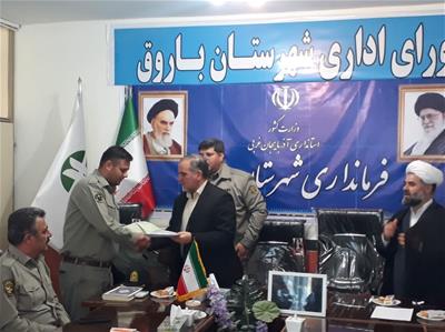 آیین معارفه رئیس اداره محیط زیست شهرستان باروق صبح امروز در محل فرمانداری باروق و با حضور مهندس حسینی فرماندار شهرستان ، دکتر سعید شهند مدیرکل حفاظت محیط زیست آذربایجان غربی ، جمعی از مسئولین و خانواده معزز شهدا برگزار گردید.