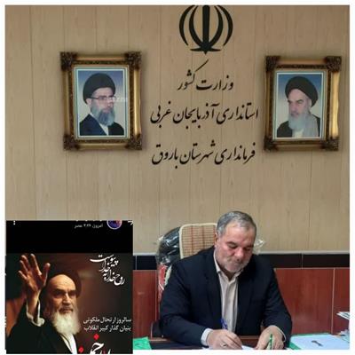 فرماندار شهرستان باروق فرا رسیدن سالروز ارتحال امام خمینی (ره) و قیام 15 خرداد را تسلیت گفت.
