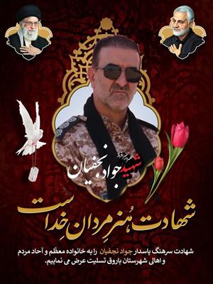 فرماندار باروق با صدور پیامی ،شهادت سردار رشید اسلام جواد نجفیان، از حافظان امنیت اهل روستای نادرگلی از توابع بخش مرکزی این شهرستان را تسلیت گفت.