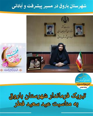 به گزارش روابط عمومی فرمانداری باروق، سرکار خانم مریم مسرت فرماندار شهرستان باروق با صدور پیامی فرا رسیدن عید سعید فطر را تبریک گفت.