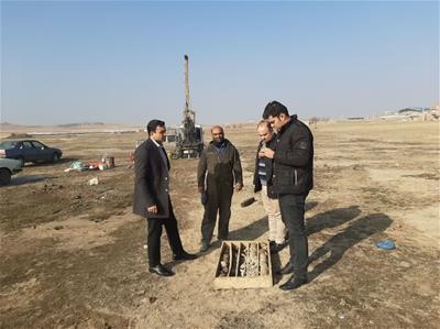 بازدید کارشناسان فرمانداری باروق از روند اجرای آزمایشات مکانیک خاک (حفر گمانه جهت تخمین باربری و تعیین تنش مجاز خاک) در محل احداث مرکز جامع سلامت روستای گل سلیمان آباد از توابع بخش مرکزی شهرستان باروق.