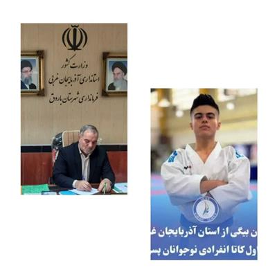 صالح حسینی فرماندار شهرستان باروق طی پیامی کسب عنوان قهرمانی و راهیابی به اردوی تیم ملی رده نوجوانان آقای عرفان بیگی در رشته کاتا را تبریک گفت متن پیام بدین شرح است: