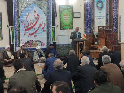 سخنرانی صالح حسینی فرماندار شهرستان باروق در جمع روزه داران ومومنان عزیز عید سعید فطر در مسجد جامع شهرستان باروق.