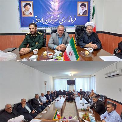 مهندس حسینی در این نشست گزارشی از روند توسعه شهرستان از جمله ارتقای سطح تقسیمات کشوری باروق از بخش به شهرستان و افزایش بیش از 8 برابری بودجه، سفر مقامات استانی و کشوری به شهرستان، معضل مهاجرت، استقرار ادارات، ساماندهی معادن، آب آشامیدنی شهر باروق، تامین برق شهرستان باروق، جاده ترانزیتی سرچم و... ارائه داد.